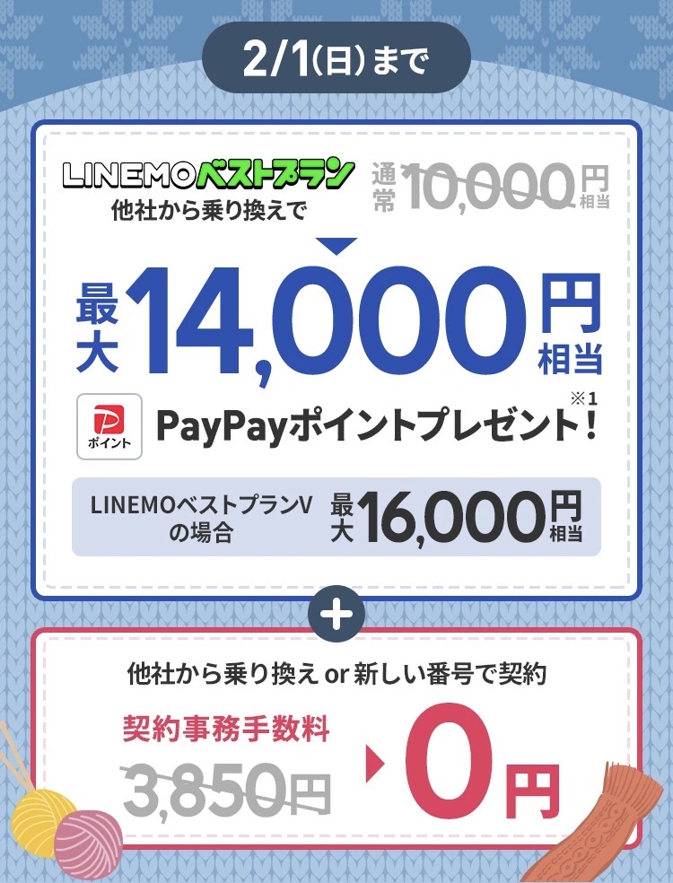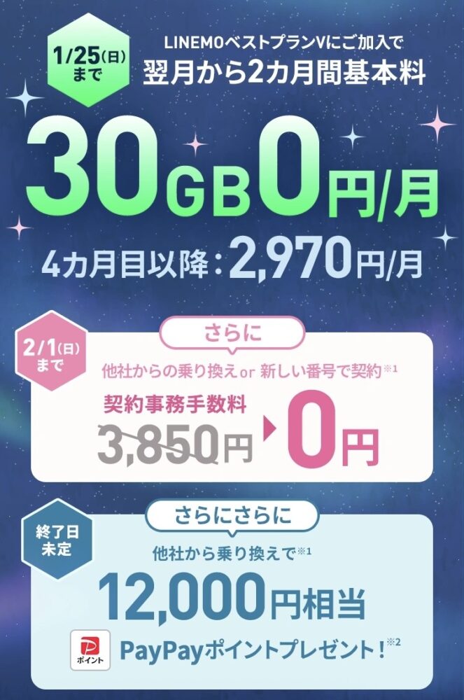 さらに、最大12,000円相当のPayPayポイントもらえる特典があるのも、LINEMOの魅力です。