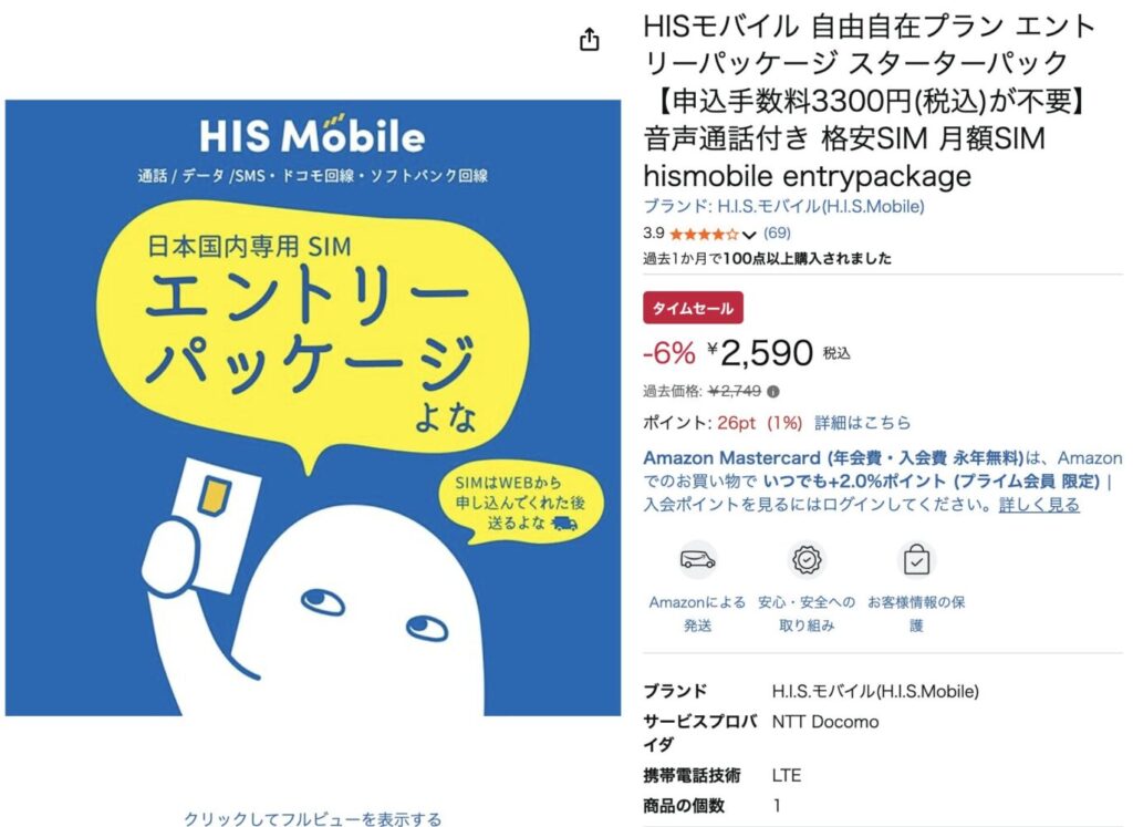 HISモバイル、料金が安くてめちゃくちゃいいですよね。