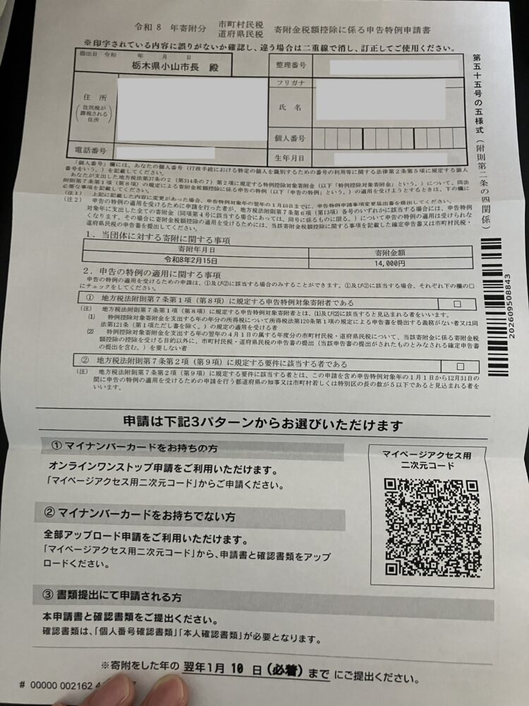 寄付が完了したら、最後に税金控除の手続きを行います。