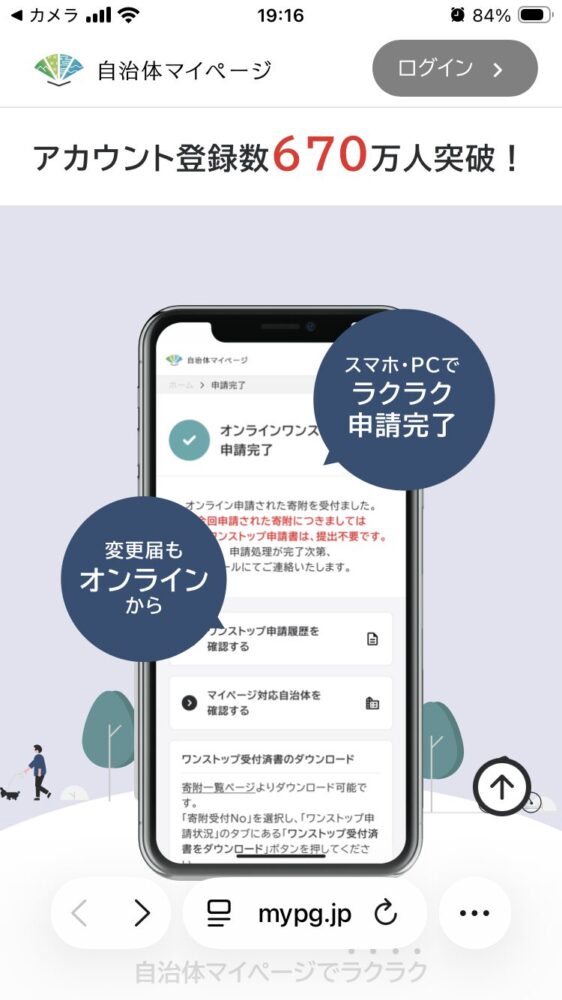 今回は「自治体マイページ(mypg.jp)」を使ったオンラインワンストップ申請の流れを解説します。