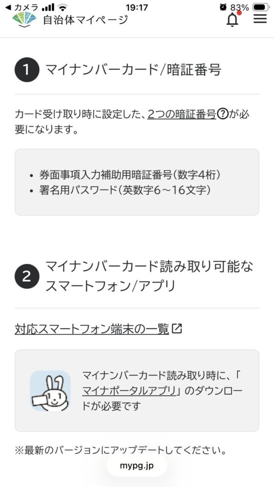 - 「自治体マイページ(mypg.jp)」へアクセス