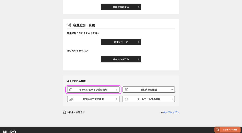 すると、キャッシュバックの特典が表示されます。