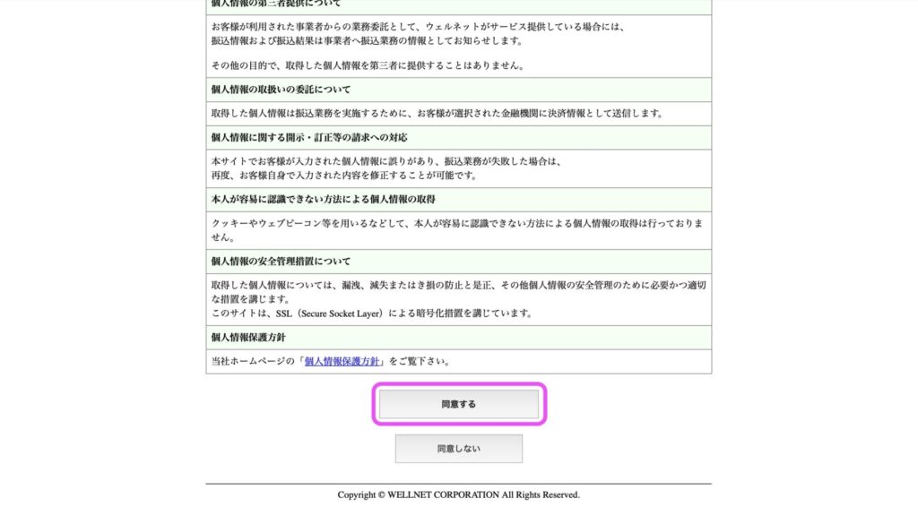 確認が済んだら、「同意する」をクリックします。