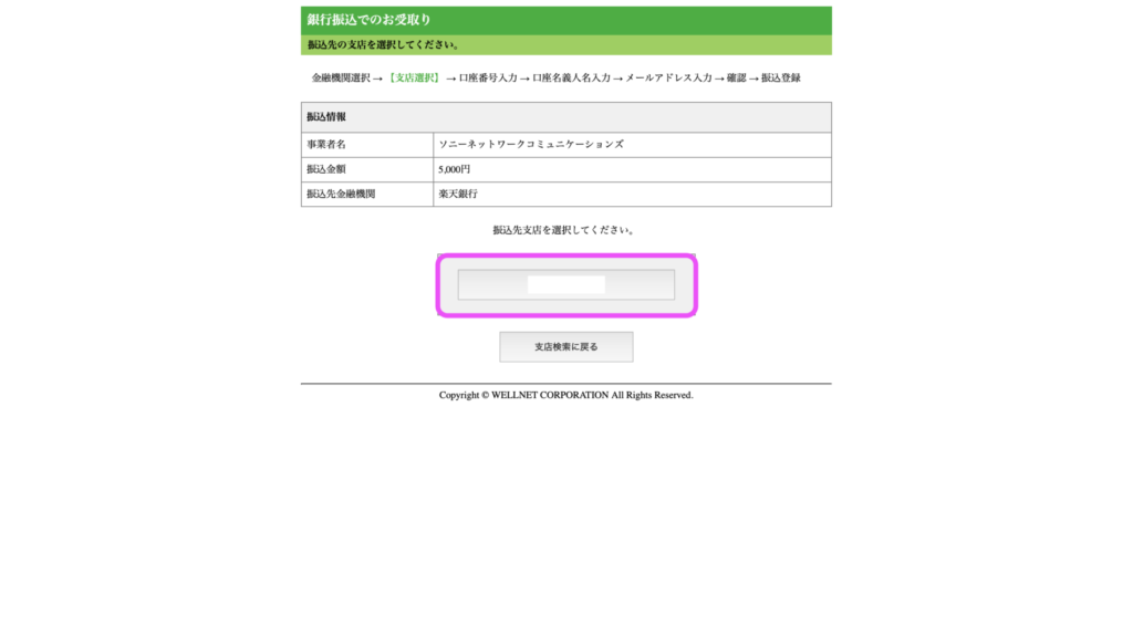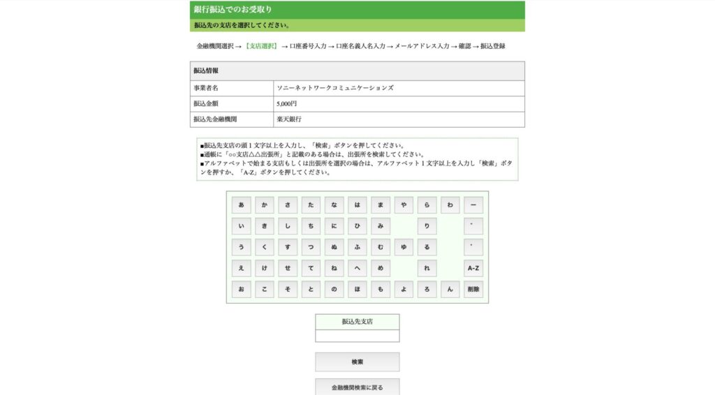 続いて、振込先の支店を検索していきます。