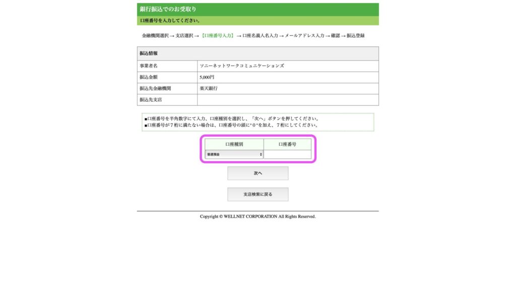 そして、口座番号を入力します。
