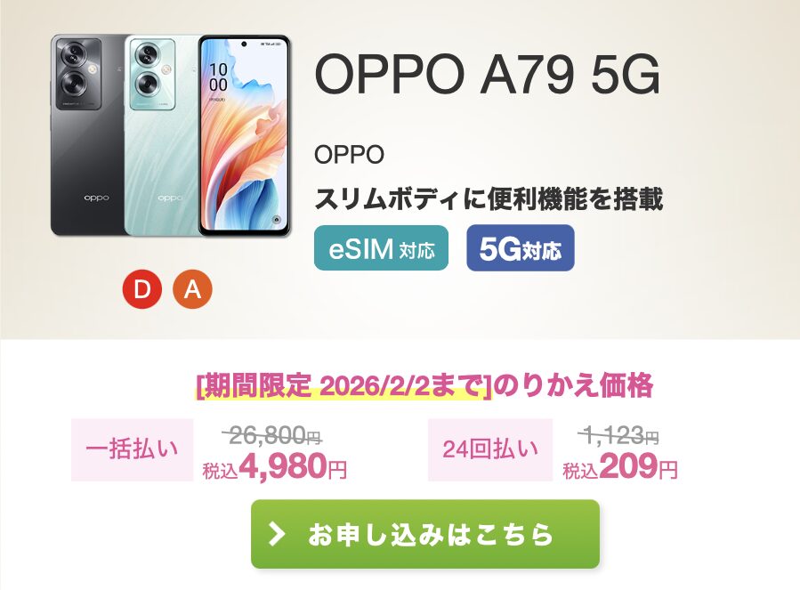 他社から乗り換えが条件ですが、26,800円のスマホが『81%オフ』です。